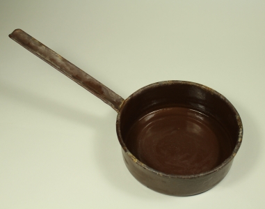 eine einfache Kanne mit Ausguss und Griff (rechts) hergestellt aus dem