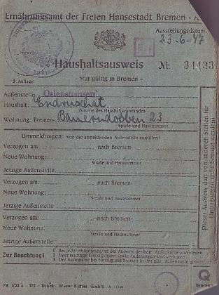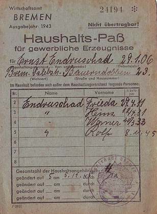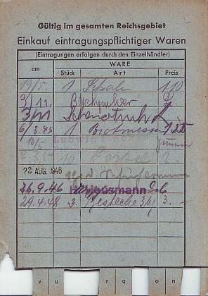 . Marken und Bezugsscheine - Kriegszeit Im Haushalts-Paß wurde vom Einzelhandel der Einkauf eintragungspflichtiger