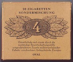 ![]() . ![]() . "Zigarettenwährung" Tabakwaren avancierten schon während des Krieges ab etwa 1942/43 beim Schleich- und Tauschhandel zum "neuen Geld". Hier einige Beispiele deutscher Zigarettenmarken.