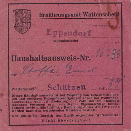 Backpulver und Besteck. Folgend ein Haushalts-Paß aus der Kriegszeit,